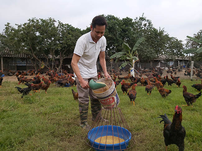 Trước Tết nguyên đán, trang trại của anh Tuân đã xuất bán trên 2 tấn gà với mức 90.000đ/kg, nhưng từ sau Tết đến nay giá cả có nhiều biến động, hiện tại anh Tuân xuất bán gà thịt với giá 70.000 – 75.000 đồng/kg.